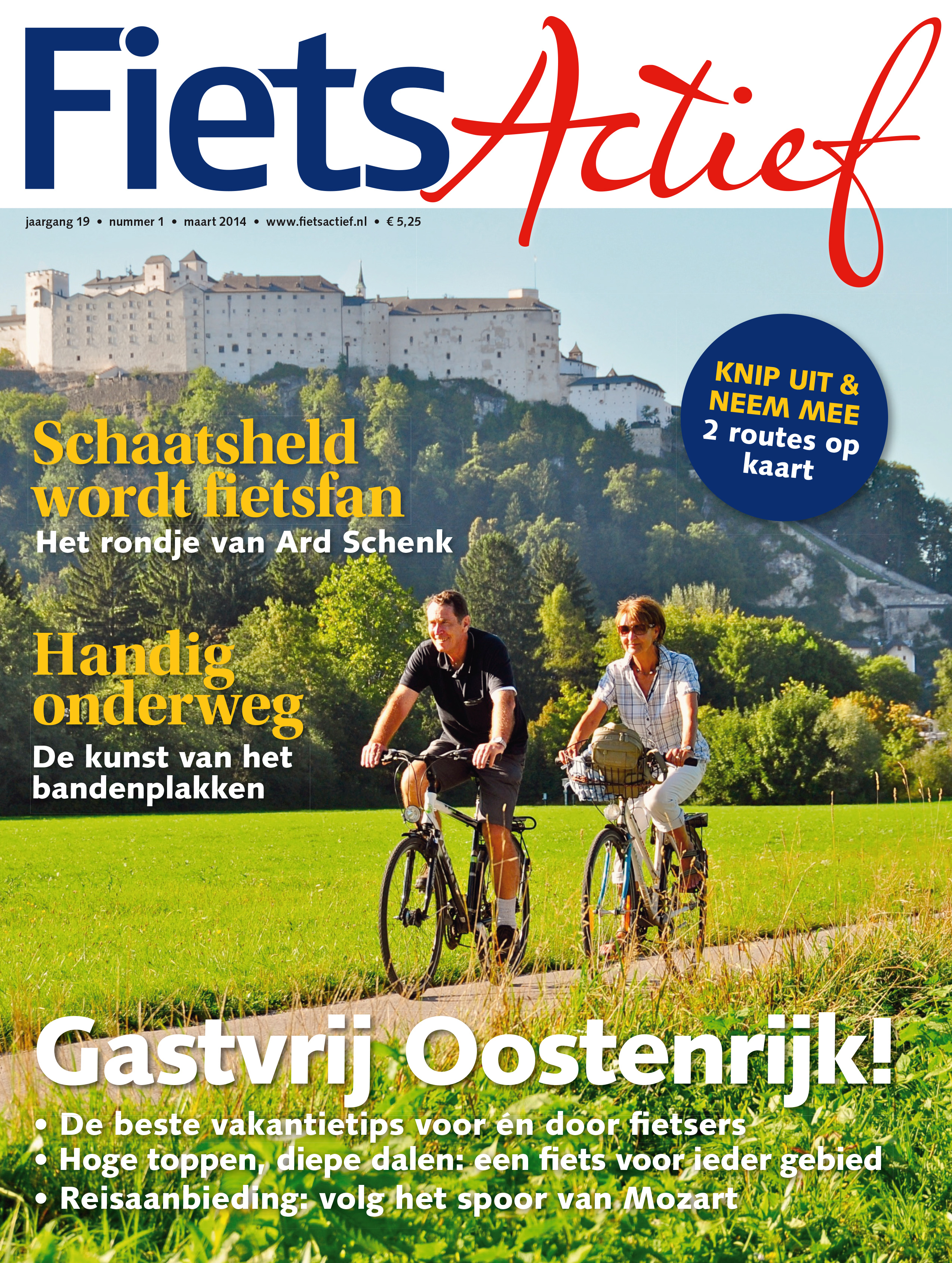 Het nieuwe fietsseizoen staat te trappelen om van start te gaan! Jij ook? Dan kun je in de eerste FietsActief van 2014 volop inspiratie opdoen. Ga bijvoorbeeld fietsen langs de Gelderse Grebbelinie of rijd rond Tiel een prachtige bloesemroute via knooppunten. Ook de afwisselende pingoroute in Friesland is zeer de moeite waard (geen idee wat een pingo is… neem dan hier een kijkje). Verder zetten we in dit nummer fietsland Oostenrijk in het zonnetje met de beste fietsvakantietips van ervaren Oostenrijkgangers, twee reizen om van te watertanden en de beste fietsen voor het land van bergen en dalen.